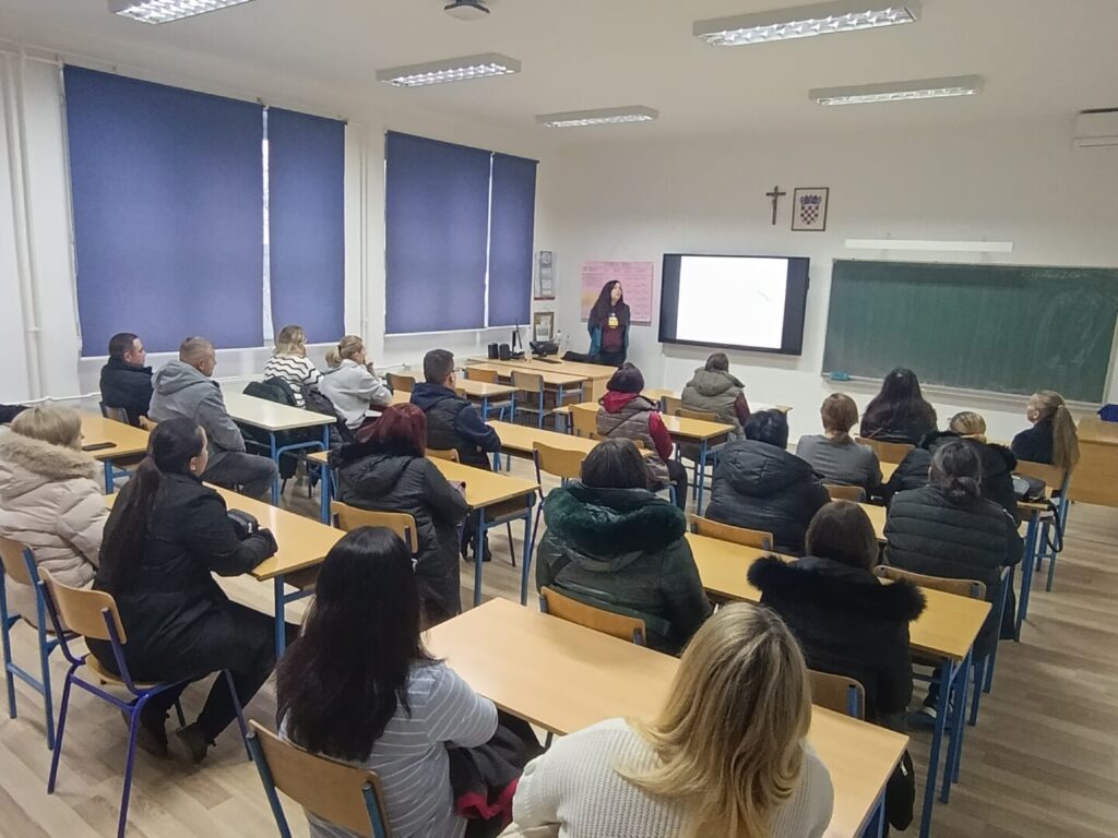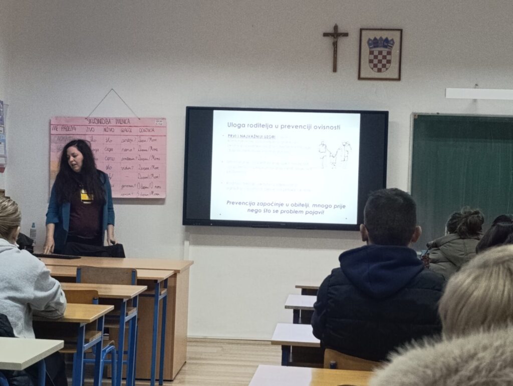 U četvrtak 15. siječnja 2026. održano je interaktivno predavanje za roditelje učenika 5. i 6. razreda pod nazivom “Ovisnost i mladi”, u suradnji s Nastavnim zavodom za javno zdravstvo Osječko-baranjske županije. Predavanje je održala magistra psihologije Ivana Janković, koja radi u Zavodu. Osim prikaza različitih ovisnosti, psihologinja je roditeljima objasnila načine prepoznavanja konzumiranja opojnih sredstava te ukazala na primjere prevencije određenih ponašanja i istaknula važnost njihove uloge u toj prevenciji.