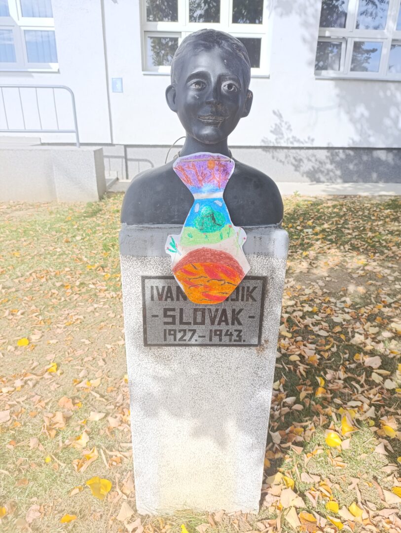 U matičnoj je školi izrađen prigodni pano, a učenici i učitelji obilježili su dan odijevanjem kravate. Upriličena je i izložba likovnih radova nastalih na izvannastavnoj aktivnosti Likovnjaci. Jedna je kravata tradicionalno stavljena i na bistu Ivana Brnjika Slovaka ispred škole.