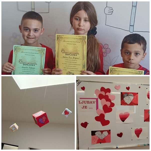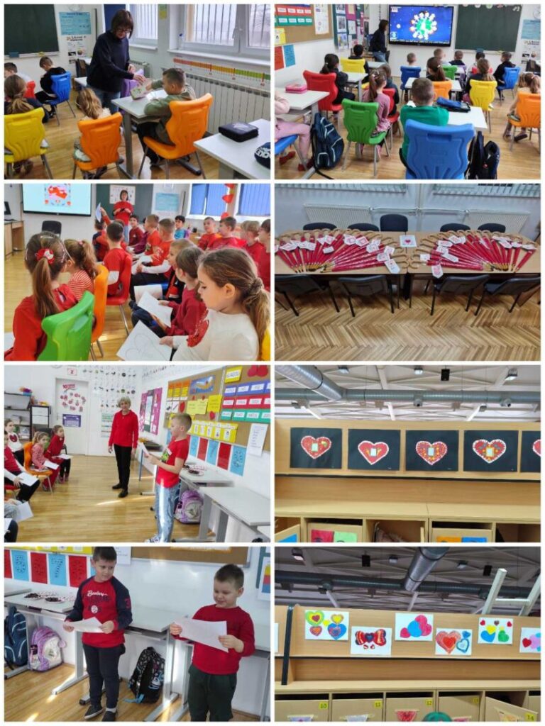 Učenici 3. razreda upoznavali su se s vokabularom vezanim uz Valentinovo na slovačkom jeziku uz učiteljicu Saru Gavljak. Izrađivali su čestitke, a na kraju sata zasladili su se Raffaelo kuglicama. Učenici 6. razreda rješavali su zanimljivu križaljku čije je rješenje bilo „Srce puno ljubavi“ dok je 8. razred samostalno istraživao kako se Valentinovo slavi u Slovačkoj.
