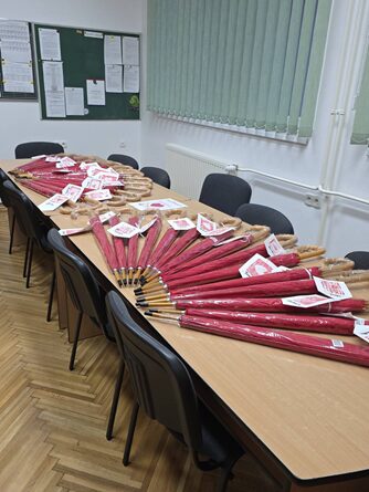 Iznenađenje za sve zaposlenike pripremile su ravnateljica Ljerka Ćorković i učiteljica likovne kulture Tamara Sekulić. U jutarnjim satima učitelje i radnike škole dočekali su crveni kišobrani s porukom: