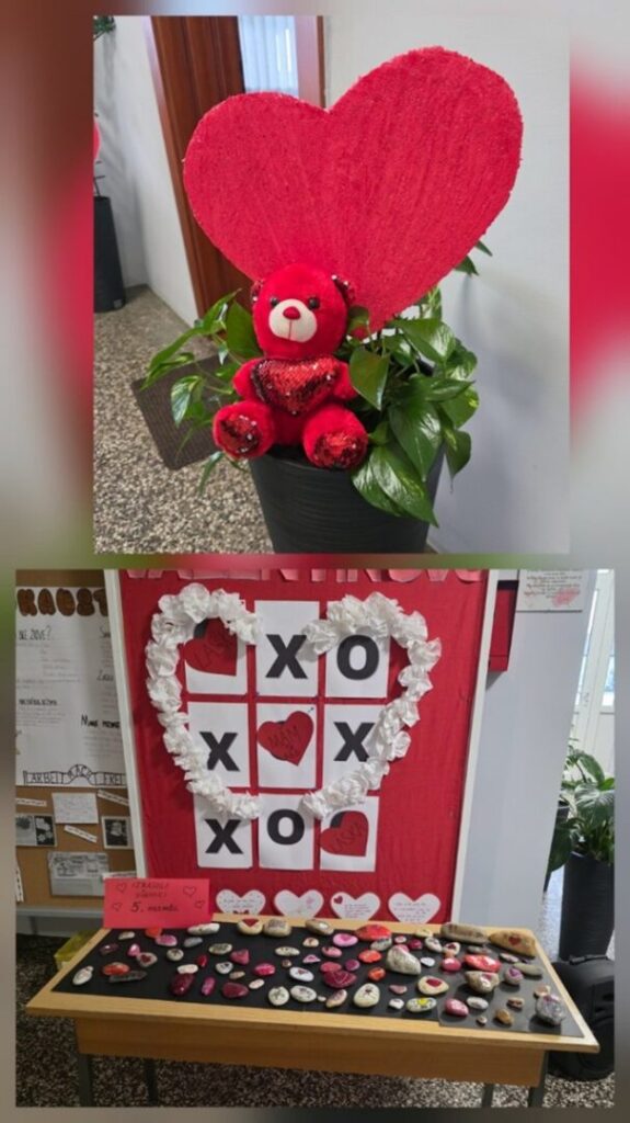 Povodom Valentinova naša je škola zasjala u posebnom ruhu – obukla se u crveno, boju ljubavi, prijateljstva i pažnje. Hodnici i učionice bili su ispunjeni vedrim detaljima, porukama i osmijesima, a i tmuran kišni dan dobio je sasvim drugačiji ton.